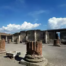 Pompeii, located near Naples, Italy, was founded in the 6th century BC and was a thriving commercial and cultural center of ancient Rome. The eruption of Mount Vesuvius in 79 AD instantly buried the city in ash and pumice, preserving its architecture, frescoes, and traces of its inhabitants until archaeological excavations in 1748 rediscovered its splendor.