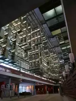 The unique steel and glass structure creates a futuristic atmosphere, allowing you to explore books.