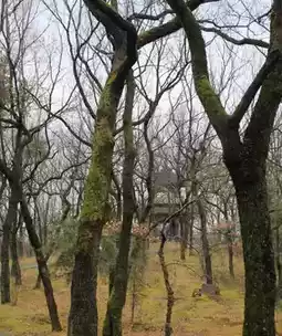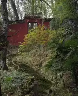 ➌ Bifeng Mountain in the back mountain is not high. After the tomb, you can cross the Chuihua Gate and climb up the steps to reach the top of the mountain. There are Sishu Pavilion and Wangu Yunxiao Hall on the mountain. There are many towering trees around, covered with green moss and lush branches. The bluestone road is long and winding, which looks more ancient and simple on rainy days.