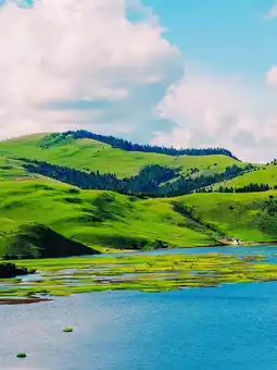 "Sayram Lake of Western Sichuan" Recreated: The azure lake, like a dazzling gem embedded in the earth, reflects towering snow-capped mountains and vast meadows. Every frame resembles a meticulously painted oil painting. From May to September, rhododendrons and wildflowers bloom across the meadows like a colorful carpet, with grazing cattle and sheep creating a Miyazaki-esque fairy tale world you'll never want to leave.