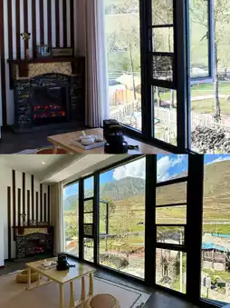 Waking up to birdsong in the morning, outside the window clouds drift and swirl ☁️. Strolling and meditating along the lakeside, you might occasionally meet slow-moving cattle, horses, and sheep, reaching out to touch the gentle embrace of the wild; in the afternoon, cozying up in the guesthouse café with a hot drink and a leisurely book 📖, sunlight streams through the glass onto the pages, warming your fingertips as time quietly flows by.
