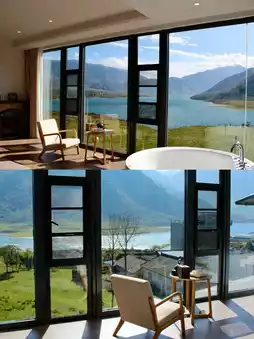 The lakeside guesthouses are hidden gems among the mountains and waters, where wooden textures blend with natural scenery like a serene work of art 🖼️. Opening the window reveals the lake and mountains; closing your eyes, you can hear the wind brushing through leaves and the gentle lapping of water against the shore. Here, there’s no need to chase anything—just sitting quietly allows you to fully connect with your inner self.