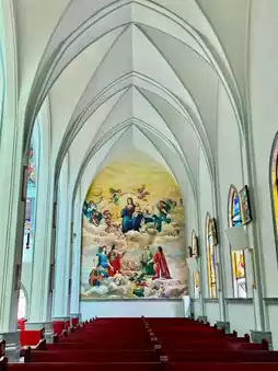 ✔ Beautiful Architecture 🏰 – Features classic European-style design with stained glass windows and a grand altar.