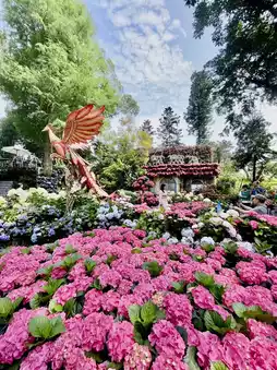 Hualu Farm is a flower farm where hydrangeas bloom in full splendor from April to June each year, creating a stunning sea of flowers. The farm also features expansive green lawns, a therapeutic owl wooden cabin, and a sky walkway for exploration.