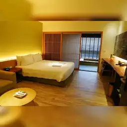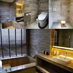The rooms are designed with Japanese-style wooden decor, offering a spacious and clean environment. A large window provides a great view of the surroundings. Inside the room, thereās a large hot spring tub, a smart toilet, and a shower area. The TV offers a variety of programs, and the hotel also provides welcoming snacks and drinks. š