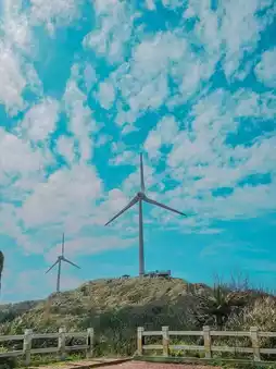 On the coast of Houlong, Miaoli, there is an open and free world - Cape of Good Hope. There is no hustle and bustle of the city here, only wind, only sea, and a whole row of wind turbines towering into the sky, slowly rotating between the blue sky and the grassland, making a low humming sound, like nature whispering in your ear.