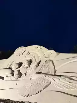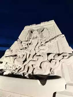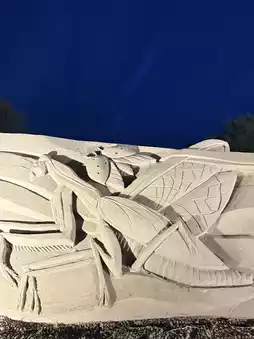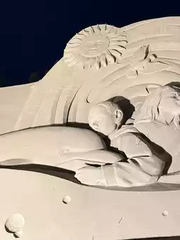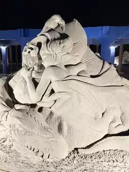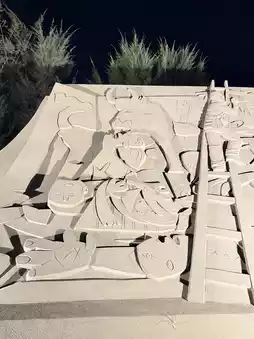 Upon entering the park, the first thing that catches your eye is the massive main sculpture, 70 meters long and 5 meters high. Its delicate texture gleams golden in the sunlight, interwoven with images of flowers, stars, and doves of peace, conveying themes of sustainability and peace. Standing before the sand sculptures, you can sense how the artist, with each grain of sand, has crafted a magnificent yet delicate story.