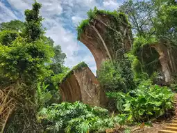 The Miaoli Longteng Broken Bridge (also known as Yutengping Broken Bridge) is a county-designated historic site located in Sanyi Township, Miaoli County. Built in 1907 during the Japanese colonial period, it was originally the highest-altitude and largest-span brick arch railway bridge on the Taiwan Trunk Line. Constructed with red bricks and granite without the use of reinforced steel, the bridge showcases the engineering excellence of its time. In 1935, the Guandaoshan Earthquake caused severe damage to the bridge, leaving only its majestic piers as remnants. The 1999 921 Earthquake further caused partial collapse of the piers, making it a historical landmark that bears witness to two major earthquakes in Taiwan's history. Today, along with Shengxing Station, it is a popular attraction on the Old Mountain Line. The remaining brick arch structures, set against lush greenery and tung blossoms, exude a poignant beauty.