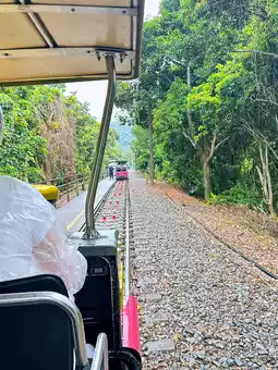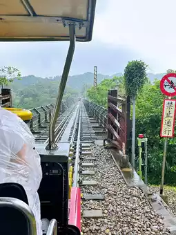 It's raining heavily in Miaoli today, but I still have to cycle back to the old mountain road despite the rain! The on-site staff was super courteous and distributed raincoats directly to us, so everyone can leave with peace of mind and not be afraid of getting wet🧥. 4 people in one car, it's lively enough! The ticket price is only 285 Taiwan dollars, which is quite good value for money
