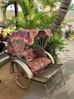 The Balai Raya setup at Mid Valley really caught my eye. It’s designed like a traditional village hall where people gather for events or celebrations. There are bamboo sticks, pretty curtains, wooden furniture, and soft lights hanging all around. Sitting inside gave me such a calm and happy feeling. It reminded me of how communities used to come together to eat, talk, and celebrate during the festive season. This place is more than just a decoration—it tells a story of togetherness and kampung life. A lovely spot to rest and soak in the festive spirit