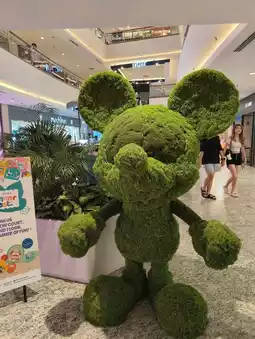 During my trip to Kuala Lumpur, I came across a magical surprise at the mall — a giant Mickey Mouse surrounded by colourful flowers and lush greenery. It felt like walking into a fairytale garden, complete with bright sunflowers, oversized blossoms, and even a cute mossy Mickey sculpture greeting visitors at the entrance. The entire setup was bursting with colours and joy, making it a perfect photo spot.
