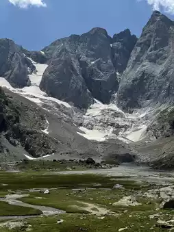 The third segment continued upward from the lake. As the altitude increased, the scenery became more barren yet expansive. The trail passes through rocky terrain and meadows, leading to a mountain hut called Refuge des Oulettes de Gaube. From here, you can get very close to the snow-capped mountains. You can continue exploring further, but I chose to return the same way.