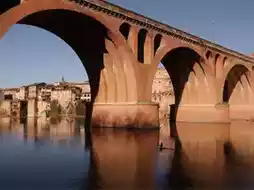 The vast, deep Tarn River is spanned by numerous bridges, creating a breathtaking sight.