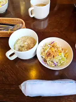 They have sauces on the table, and you can add your favorite sauce to your steak! The lunch set also comes with salad and soup, making it a great deal◎