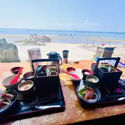 Enjoy kamameshi (rice cooked in a pot) with an ocean view ♡ Choose from five lunch menu items