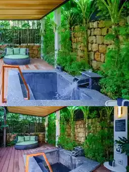 ✨ There is a private hot spring pool in the yard. The warm spring water instantly wraps around your body, and the rising steam is so warm and comfortable.