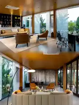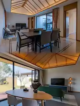 Located in the beautiful Lake Spring Ecological Park, the hotel is surrounded by lush trees and clear lakes, making it feel like a paradise. The design combines traditional and modern elements, with various plants as decoration, making it feel like an art gallery.