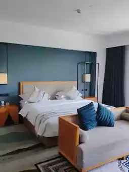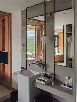 Floor-to-ceiling windows offer stunning views, dual sinks plus a spacious bathtub, and soft, skin-friendly bedding—hygiene and comfort are both top-notch.