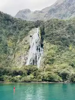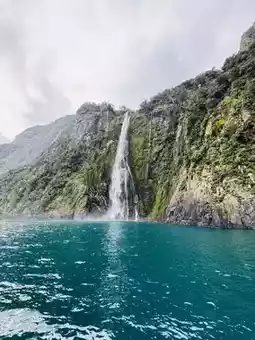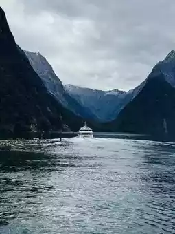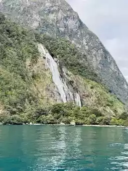 Entering Milford Sound on a boat cruise, the children were thrilled the moment they boarded. They couldn't wait to run to the side, where towering cliffs and magnificent waterfalls loomed before them. As the boat slowly approached the waterfall, the water splashed, and the children reached out to feel the splashing water, exclaiming in delight. It was both thrilling and novel.