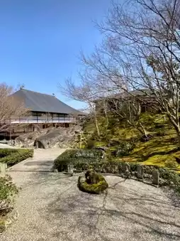 Honrakuji Temple is located on a steep slope, right next to the Yoshino River.