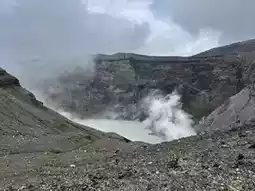We stayed at the volcano for about 15 minutes before heading to Kusasenri Grassland. Later, the tour guide explained that the short visit was due to the harmful gases released by the volcano, which can be detrimental to health if inhaled for too long. Therefore, tourists are generally not advised to stay for extended periods.