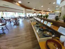 Meals are served buffet-style, featuring fresh vegetables delivered daily from the adjacent Aso Health Farm. Calories and nutritional information are clearly displayed for each dish.