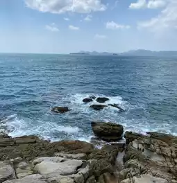 The wooden boardwalk at Dafangjiao Coastal Park winds along the dark basalt cliffs. Thirty meters below, waves crumble into a frothy foam. The salty sea breeze carries the delicate fragrance of Euphratica. Turning past the observation deck, a sudden, uninterrupted view opens up—the ocean unfolds before you, its hues gradating from cobalt blue to emerald against a clear sky.