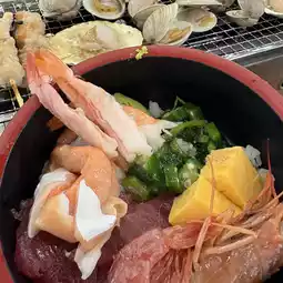 In addition to simply grilling, another highlight is the opportunity to create your own original seafood bowl using the provided sashimi, such as tuna, salmon, and marinated mackerel, and the vinegared rice machine.