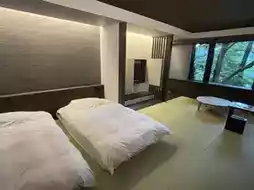 · The ryokan offers two main room types: the bungalow-style Japanese-Western-style room (a single-story structure combining Japanese and Western-style rooms) and the duplex-style Japanese-style room (a spacious duplex).