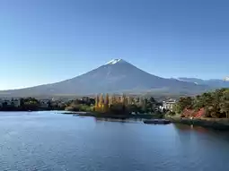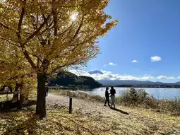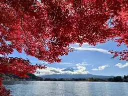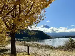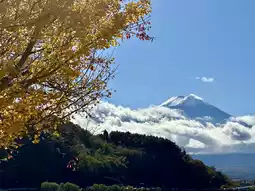 Of Mount Fuji framed with maple leaves and ginkgo trees.