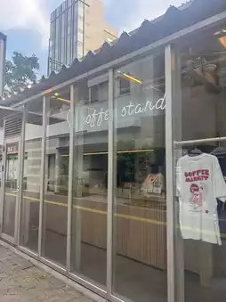 A rare sidewalk cafe opened on a sidewalk near Toranomon Hills.
