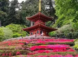 🛑If you go to Osaka and want to change from shopping to nature, close to religion, I recommend this temple, Katsuoji, the temple of victory. There are Daruma dolls all over the temple grounds. No matter where you look, you can't help but take out your phone to take pictures📸 because it's really cute and adorable. The word cute is used extravagantly. The atmosphere in the temple is peaceful and shady. You can walk around without getting bored. Stop to take pictures at almost every spot. Plus, during the time I went, the flowers were in full bloom, making me smile nonstop. There is a place to stamp your picture in the temple grounds to keep as a souvenir.