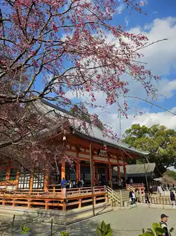 • Cherry blossoms in full bloom in spring, pink embellishes the ancient temple buildings