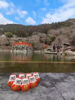 On a sunny day, the views are pretty nice as evidenced by the pictures. There are Daruma dolls in various shapes and sizes all around the temple. You are given a blank post card at the entrance of the temple (400yen entry) and you go around the temple where there are 6 stations for you to stamp the postcard to complete the entire Daruma photo.