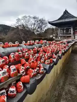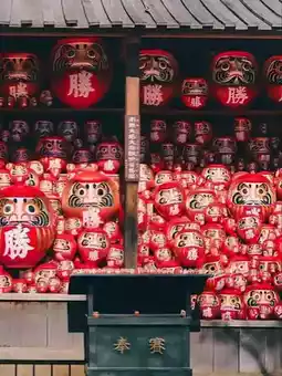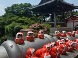 The temple is called the "Victory Temple" because daruma dolls symbolize triumph. Most visitors come to pray, renting a daruma doll, writing their name on it, and making a wish. They then leave the doll at the temple. If their wish comes true, they return to rent a larger daruma as a gesture of gratitude.