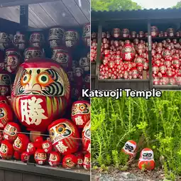 Katsuo-ji Temple is famous for its "Bishou Daruma," where people write their wishes and pray for success and safety.