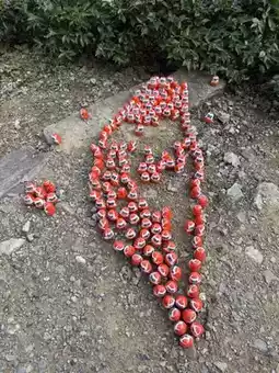While strolling through Katsuo-ji Temple in Osaka, we stumbled upon a large field of red Daruma dolls arranged in the shape of Taiwan!
