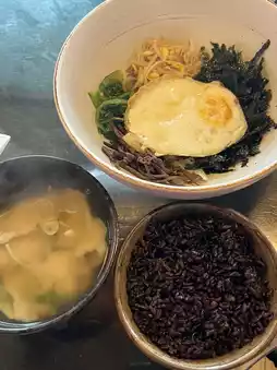 Their bibimbap served with handmade sujebi (dumpling soup) is a delightful combo…