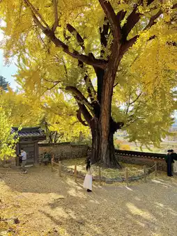 Inside Gumsidang, there is a massive ginkgo tree that turns a brilliant yellow in autumn, creating a breathtaking scene that feels like stepping into another world! It's especially beautiful when the leaves start to fall after the peak season, forming a golden carpet on the ground.☺️