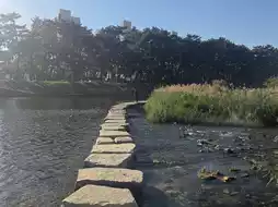 The pine trees here are mostly over 100 years old, creating a picturesque scene as sunlight softly filters through the tall trees☀️. In spring, cherry blossoms flutter in the air; in summer, the deep green shade offers a cool respite with the river breeze; and in autumn, the vibrant foliage adds a unique charm to the park with each season.