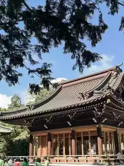 Mishima Taisha Shrine enshrines two deities: Oyamatsumi-no-Mikoto and Tsumihayae Kotoshironushi-no-Kami.