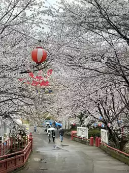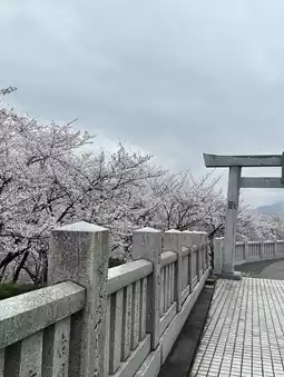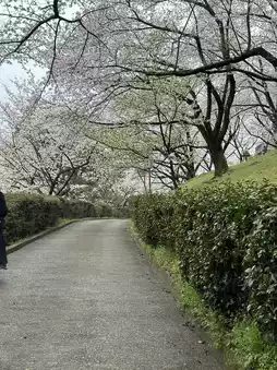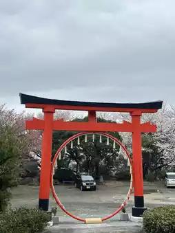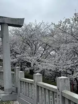 It attracts everyone with its mysterious vermilion torii and thatched wheels. There are many flat parking lots🅿️. Japanese families can be seen everywhere laying mats under the cherry trees to enjoy the cherry blossoms🌸 and have picnics. The breeze blows gently, it is really comfortable!