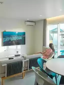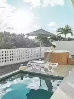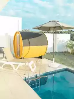 The villa features an outdoor jacuzzi, a sauna, and a pool, so you can enjoy the latest sauna activities!