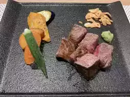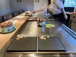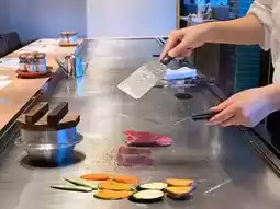 The restaurant features a stylish glass-paneled design. With a teppan grill right in front of you, the place exudes a luxurious vibe, yet maintains a casual and relaxed atmosphere, making it very enjoyable.