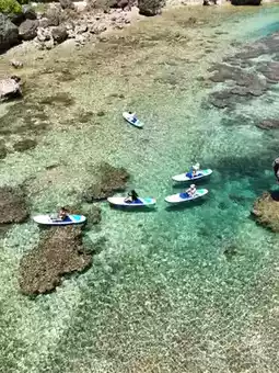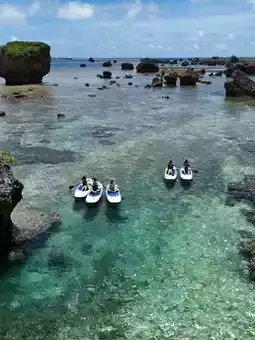 The designated beach for the day was "๐Higashi-Hennazaki Beach," where two young male staff members kindly taught me how to paddle, and I quickly got the hang of it! The beach was incredibly beautiful, and from the SUP board, I could see sea turtles, coral reefs, and plenty of fish.