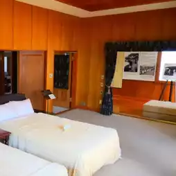 The residence showcases Edo-period architecture featuring tatami rooms, shoji sliding doors, and a formal reception hall used for meetings and ceremonies. Visitors can admire traditional landscaping with stone paths, a pond, and seasonal flora — reflecting the Japanese principle of harmony between architecture and nature. Informational panels highlight the Shimazu family’s influence in Kyushu’s political and cultural history, deepening appreciation for their regional legacy.