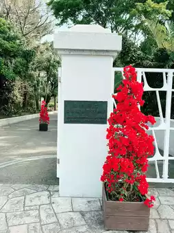 The garden is filled with palm trees such as Chinese fan palms and phoenix palms, as well as colorful flowers such as bougainvillea and hibiscus, creating a tropical landscape. In particular, the large greenhouse cultivates tropical fruit trees such as mangoes, papayas, and bananas, creating a tropical atmosphere. Another highlight is the Merlion statue, which was installed to commemorate the sister city partnership with the Singapore Botanic Gardens.