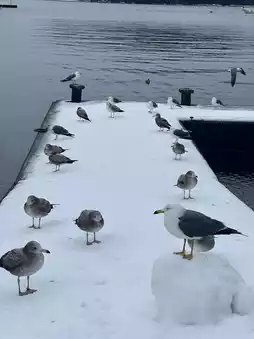 Feeding seagulls with shrimp crackers costs 100 JPY per pack
