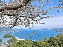 #Amanohashidate is not only one of the three scenic spots in Japan, but also a famous cherry blossom viewing place in spring, special in the cherry blossom viewing angle, overlooking the bay, can bird's view of the cherry blossoms standing on the cable car tracks and the bay sandbar.