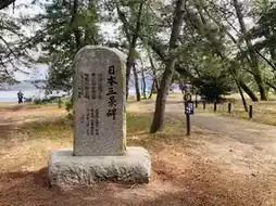 "Amanohashidate" in Miyazu Bay on the Sea of Japan in the northern part of Kyoto Prefecture is one of the Three Scenic Views of Japan, along with "Matsushima" in Mutsu and "Miyajima" in Aki.